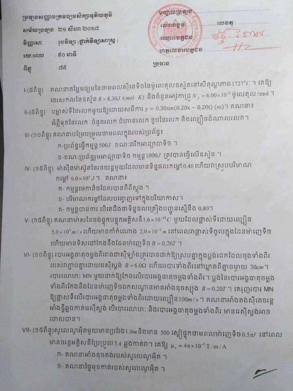 វិញ្ញាសារូបវិទ្យា ២០១៧