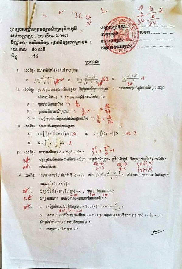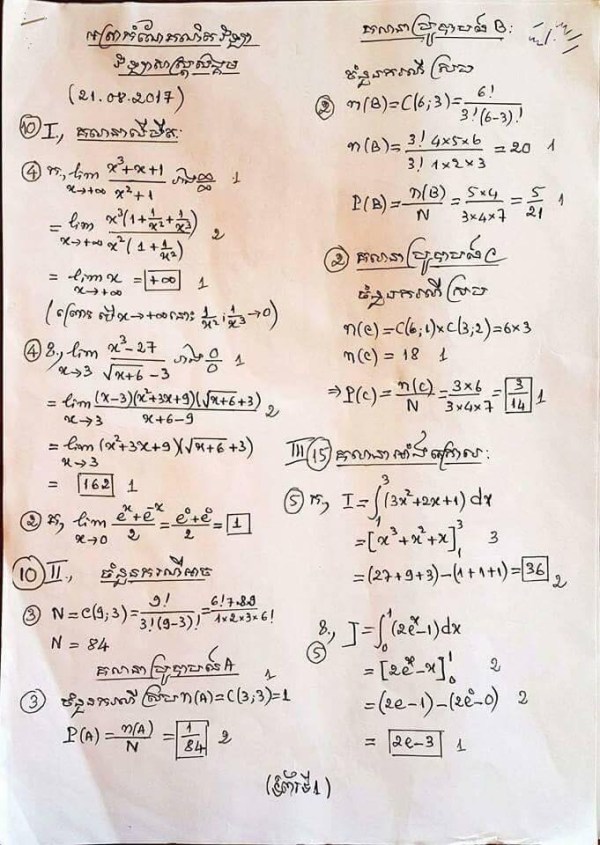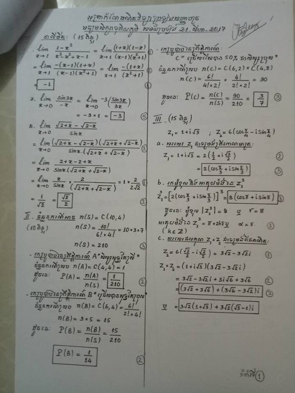 វិញ្ញាសាគណិតវិទ្យា ប្រឡងបាក់ឌុប 2017 (វិទ្យាសាស្ត្រ)