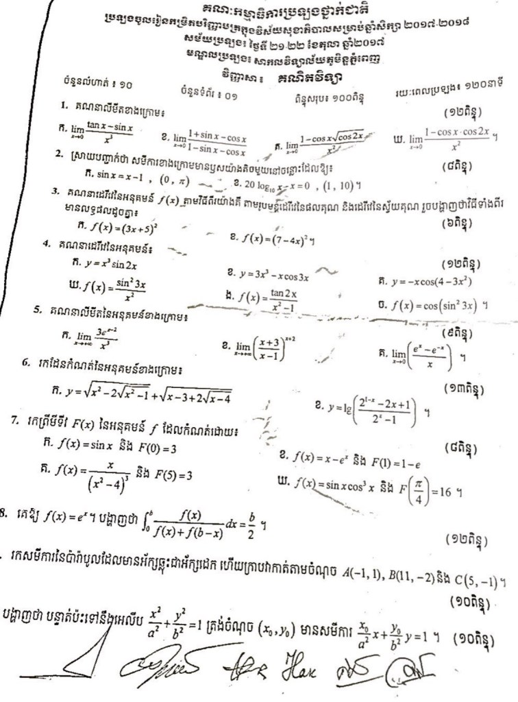វិញ្ញាសាគណិតវិទ្យា ប្រឡងចូលរៀនបរិញ្ញាបត្រក្នុងវិស័យសុខាភិបាល ឆ្នាំ ២០១៧