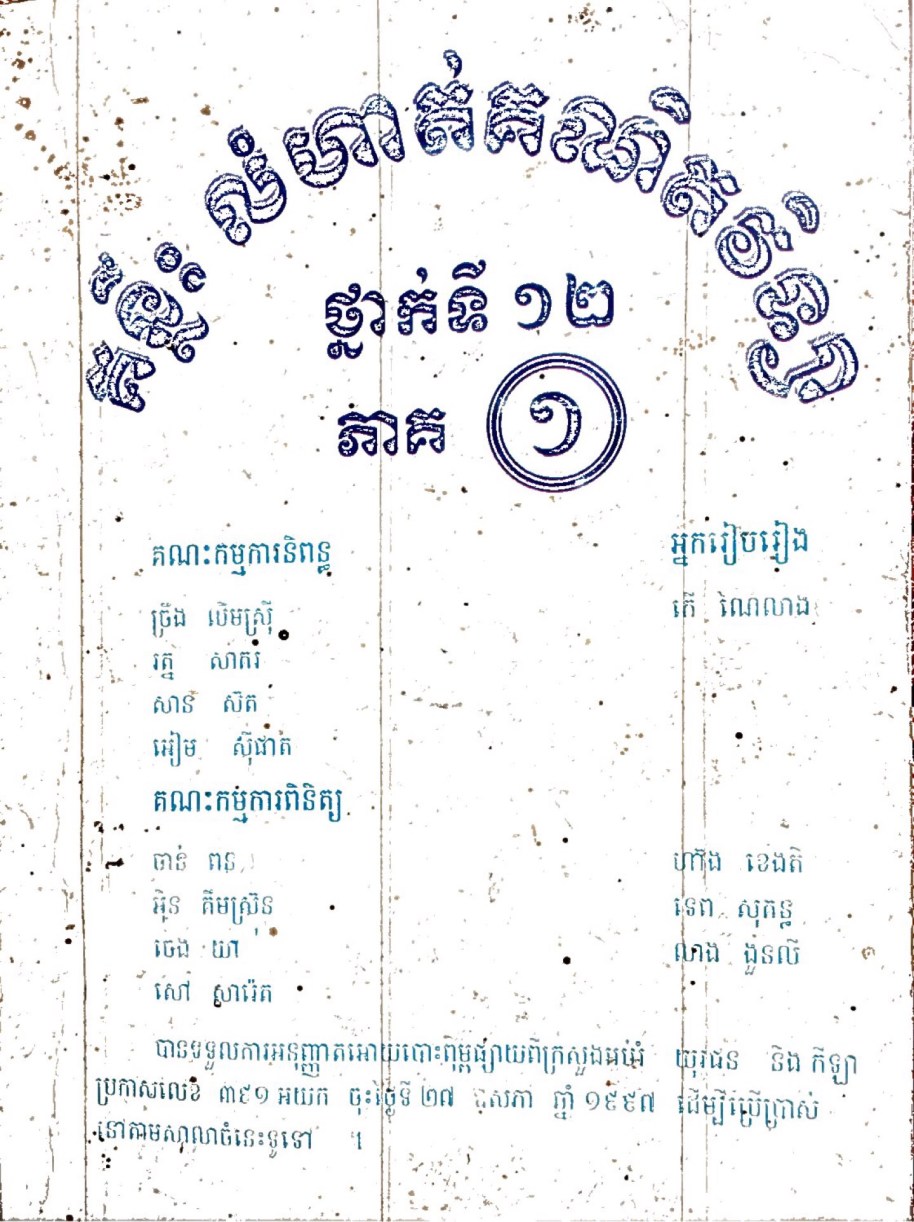 ▪ និព្វន្ធដោយ ៖ គណៈកម្មកានិព្វន្ធរបស់ក្រសួងអប់រំយុវជន និងកីឡា