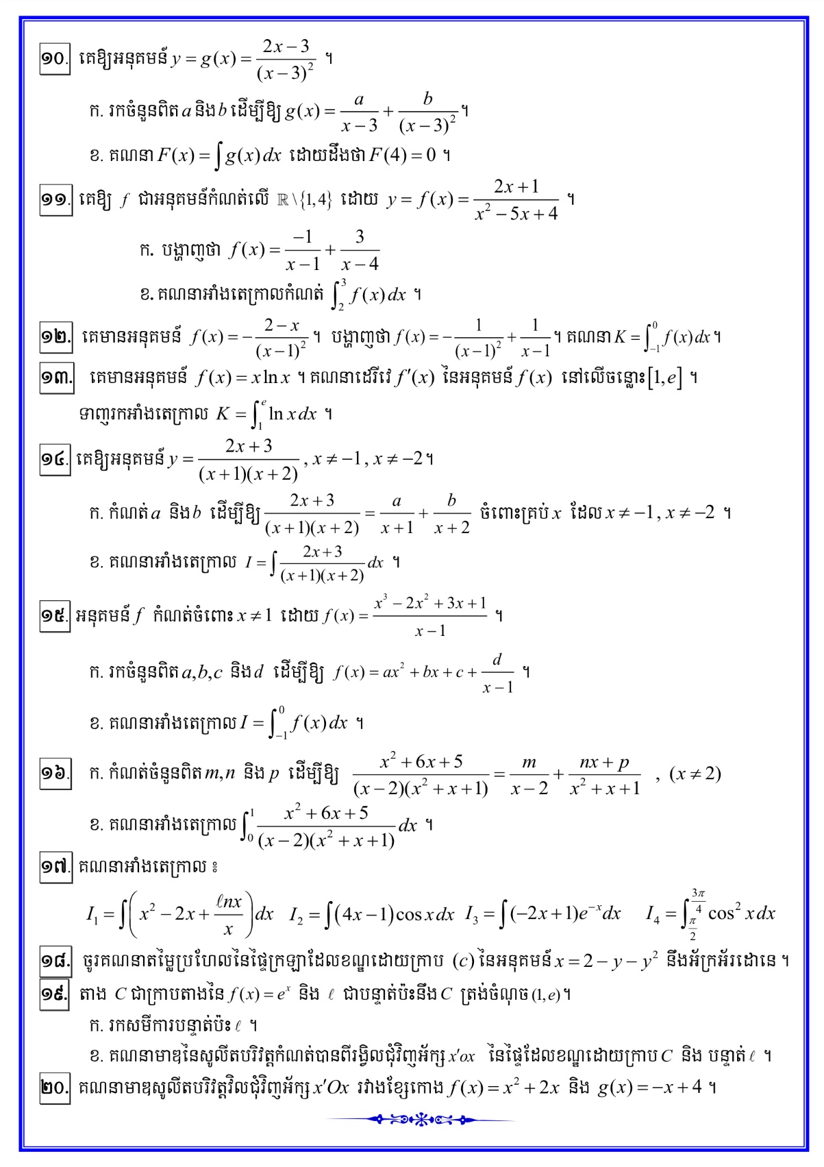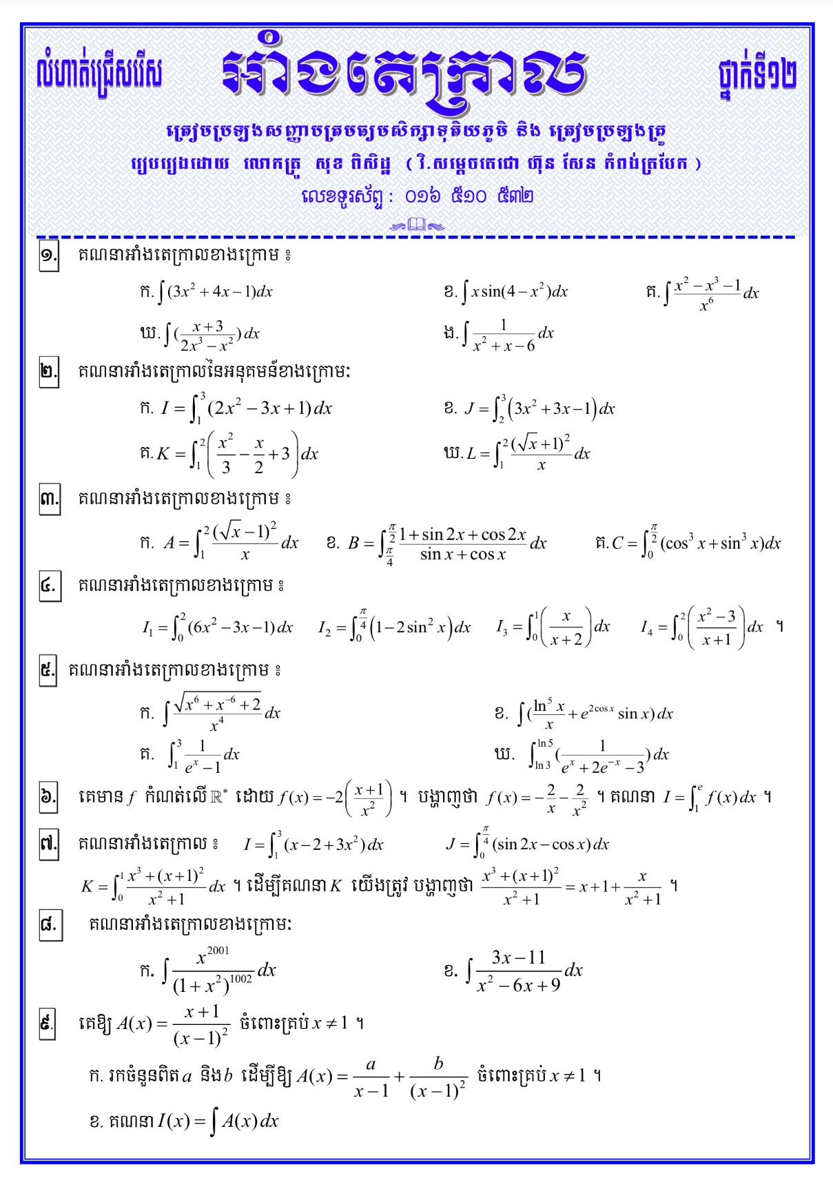 តេស្តគណិតវិទ្យាថ្នាក់ទី១២ (រយៈពេល ១២០នាទី ពិន្ទុ ១២៥)