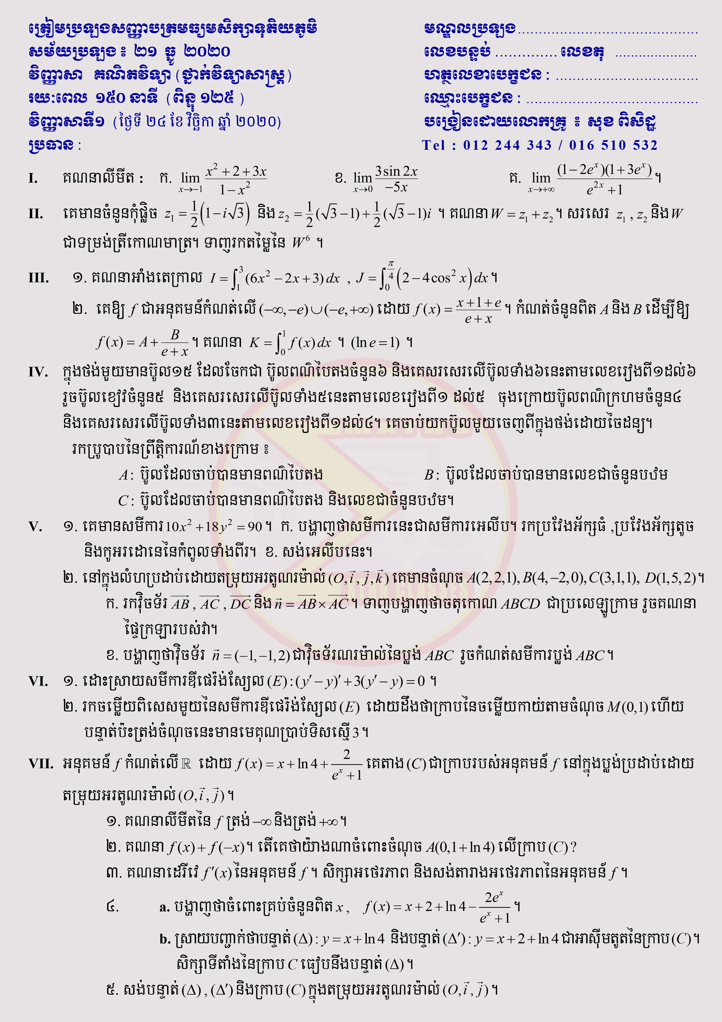 សូមថ្លែងអំណរគុណចំពោះលោកគ្រូ ប្រើស ដារ៉ា ដែលខិតខំស្រាវជ្រាវ និង ចងក្រង និងធ្វើកំណែវិញ្ញាសានេះសម្រាប់អ្នកសិក្សាទាំងអស់គ្នា។