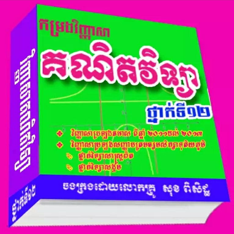 សៀវភៅគណិតវិទ្យា ថ្នាក់ទី១១ រៀបរៀងដោយ សុខ ពិសិដ្ឋ ក្នុងសៀវភៅនេះមានគន្លឹះដោះស្រាយ លំហាត់គំរូ លំហាត់អនុវត្ត និង លំហាត់ស្រាវជ្រាវផ្សេងៗ ដែលមានមាន៥ មេរៀនគឺ