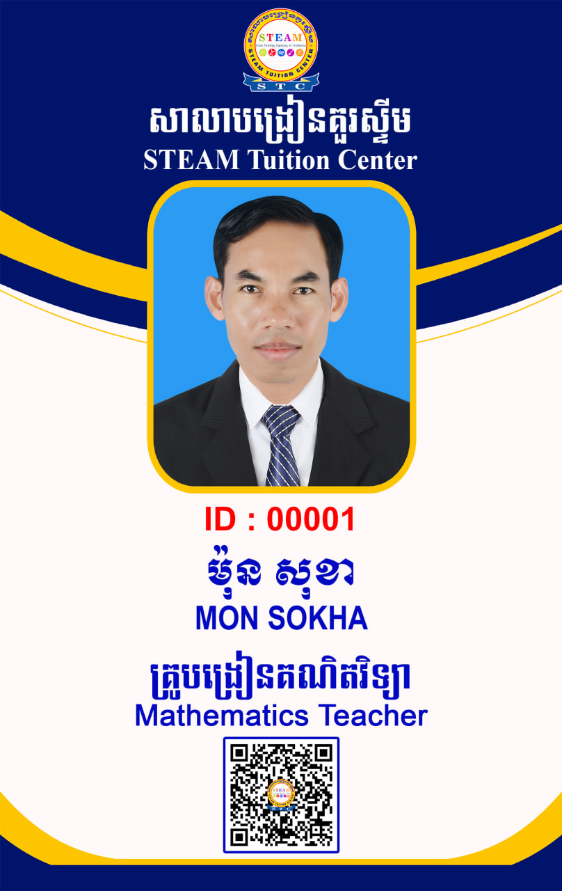 I graduated from a teacher training course of Teacher with Higher Education Degree at National Institute of Education (NIE), my specialization is Mathematics. I was teaching Mathematics at Angkorsar High school. I have completed CERTIFICATE OF PEDAGOGY for both high school and secondary school.