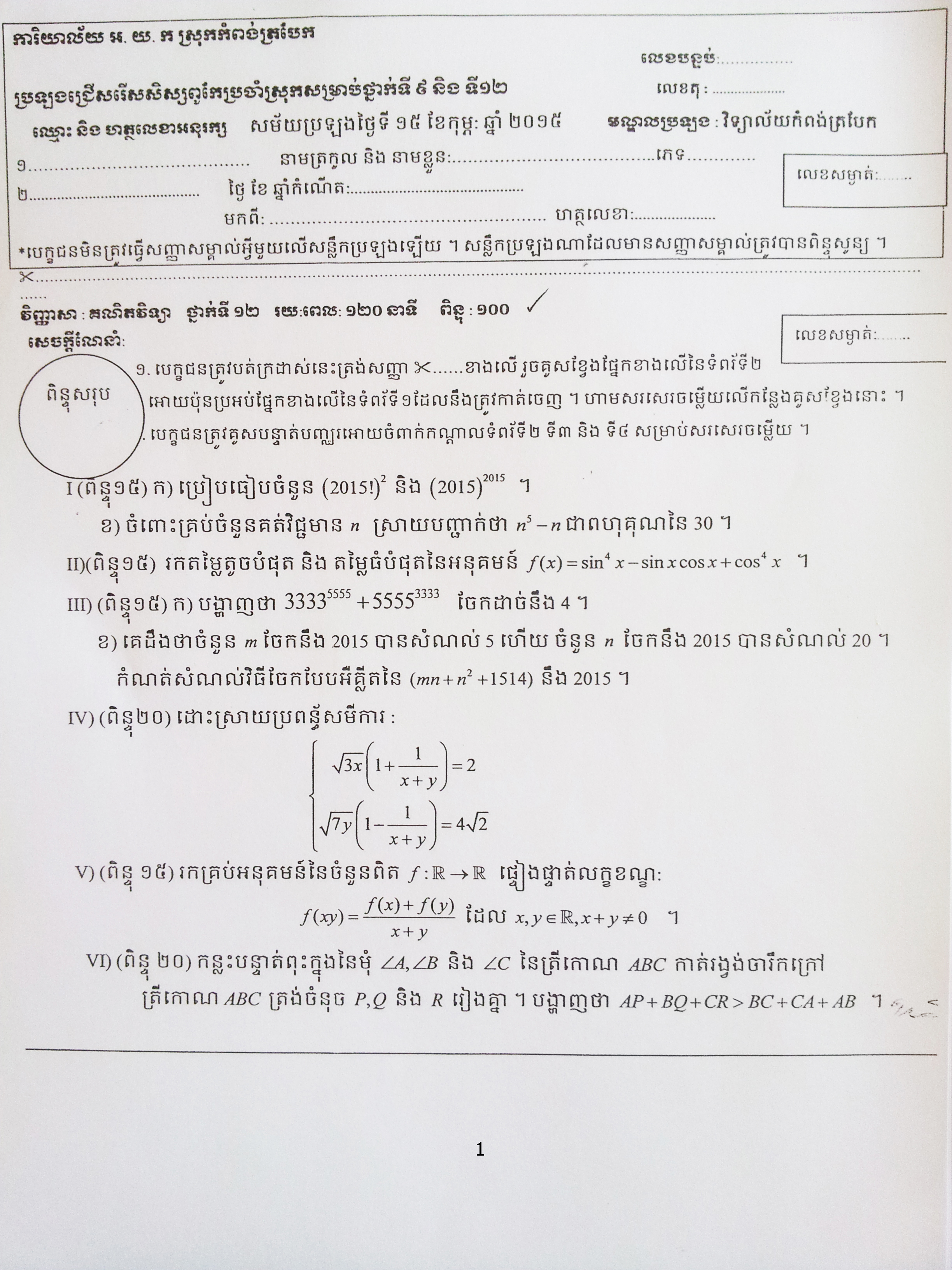 ជាគ្រូបង្រៀនគណិតវិទ្យា ជាម្ចាស់ប្លុកនេះ និង ជា admin នៃ FB page : សុខ ពិសិដ្ឋ – Sok Piseth
